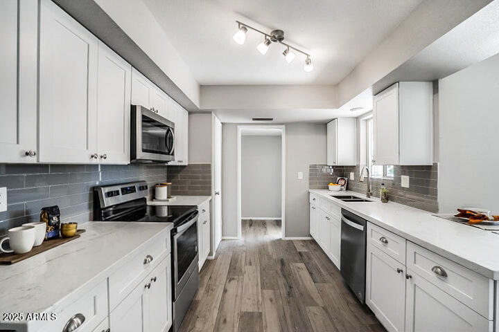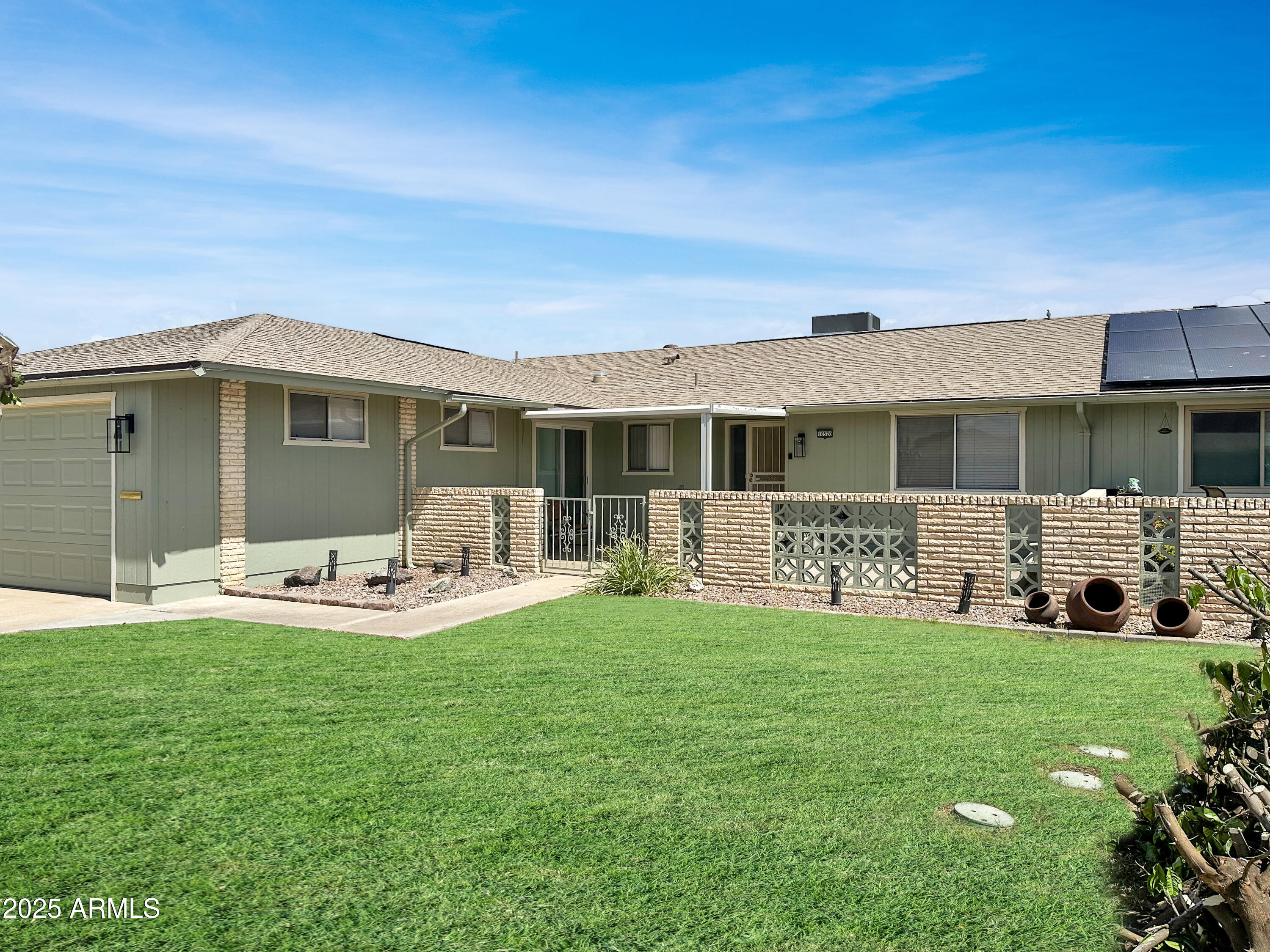 TURNKEY & MOVE-IN READY!This beautifully Remodeled Sun City Home is ready for its New Owner! Enjoy Arizona Sunsets from your charming COURTYARD & the convenience of a 2-CAR GARAGE. Featuring an ALL NEW SEWER LINE, this home offers 2 spacious bedrooms with plush carpeting, while elegant WOOD-LOOK TILE FLOORING flows throughout the rest of the home.he stylish Kitchen has White Shaker Cabinets, Quartz Countertops, Stainless Steel Appliances, and Updated Fixtures. A LARGE Laundry Room provides EXTRA SPACE Immaculate from floor to ceiling, this home is designed for easy living with LOW-MAINTENANCE!!Conveniently located just minutes from the 60 & 101 FREEWAYS! Don't miss this MOVE-IN-READY GEM---NO SOLAR