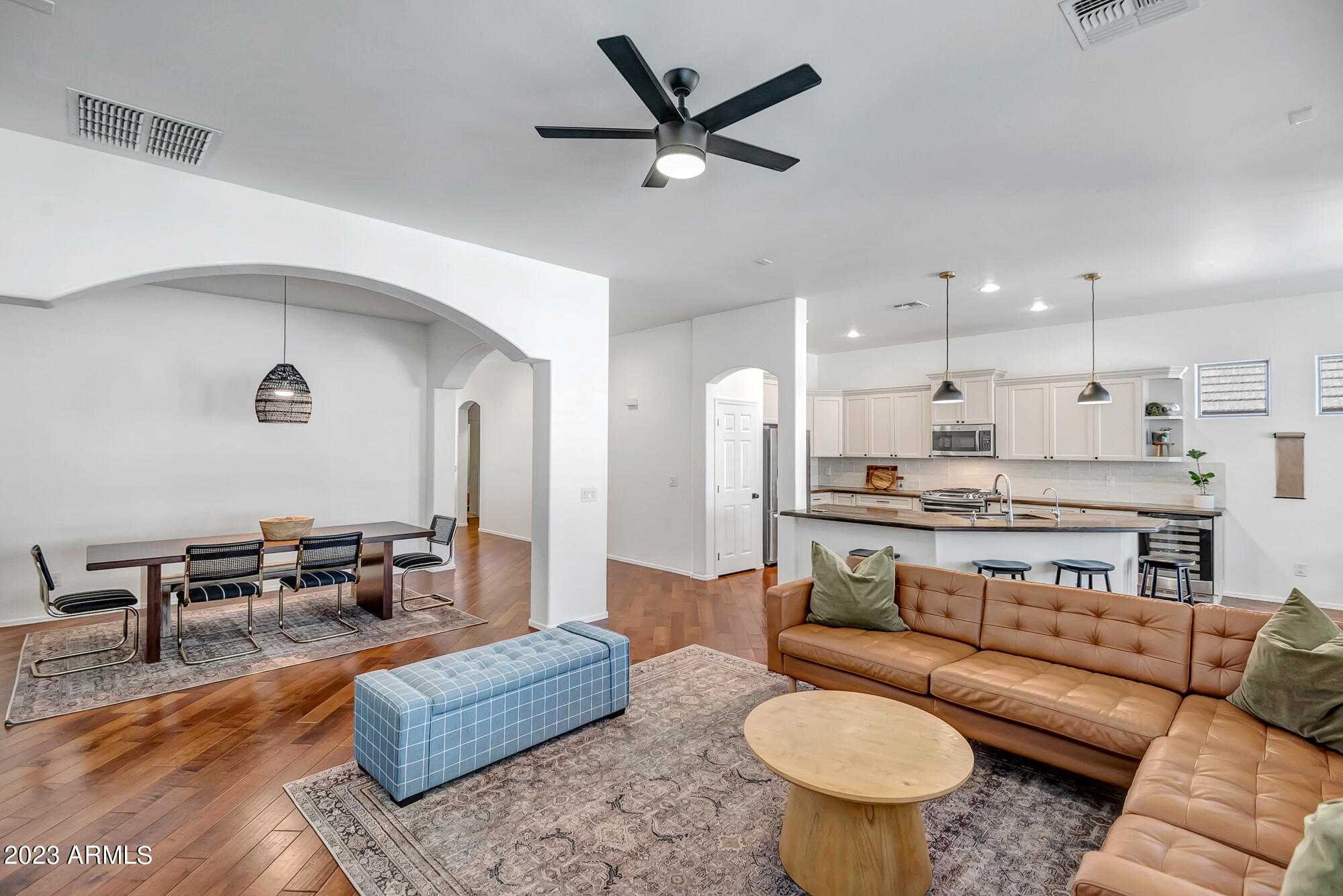 Step inside this beautifully upgraded home, where style meets comfort in every corner. The diagonal wood flooring and modernized kitchen with refreshed cabinets and backsplash create a warm and inviting atmosphere. Bask in the abundance of natural light as you explore the open floor plan, perfect for unwinding, entertaining, or cherishing moments with family. Additionally, there's a versatile den, ready to adapt to your personal needs. The backyard is a true oasis, boasting a shimmering PebbleTec pool. Dive into its cool waters on warm days or lounge poolside, soaking in the sun's rays. Located in a sought-after neighborhood, this home is just a stone's throw away from parks, schools, and shopping centers, placing convenience at your doorstep.