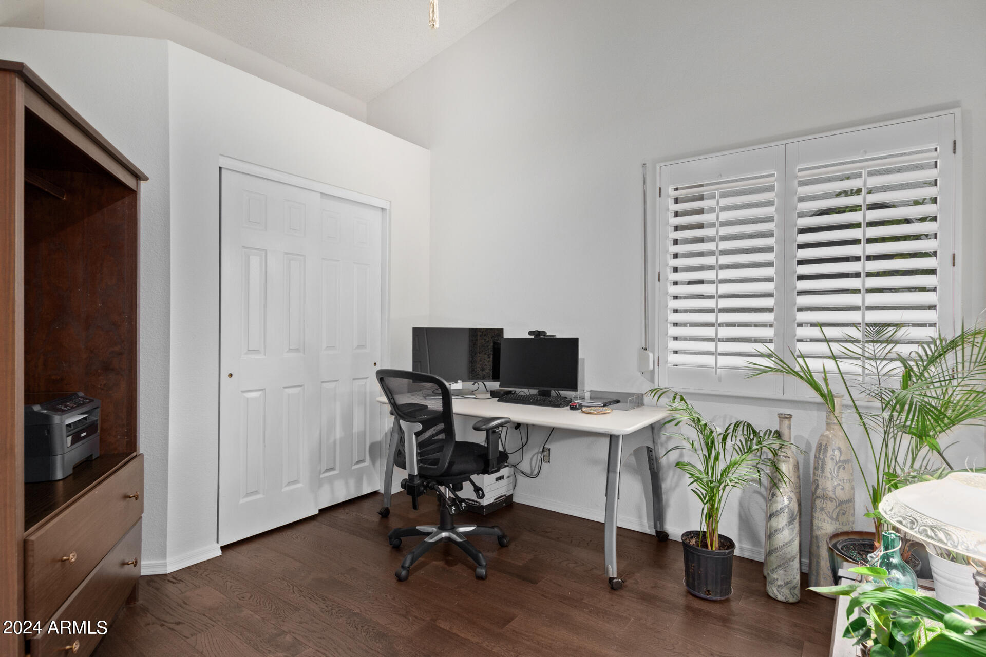 Welcome to Ahwatukee's Mountain Park Ranch community! Step into this gem of a home and experience its charm. As you approach the front entrance, a lush landscape frames the pathway, creating an inviting atmosphere that sets the stage for the elegance within. Upon entering, the foyer leads you into the living space, complete with a cozy fireplace, seamlessly blending style and comfort. Rich hardwood floors adorn the bedrooms and living area, providing a striking contrast against the abundance of natural light. Plantation shutters adorn the bedrooms and dining room, adding a touch of sophistication. Designed for optimal flow, the layout of the home connects each space in a unique way, offering spacious rooms and privacy. Experience the perfect blend of functionality and beauty in this home.